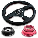 NRG-SRK-100H+012R+250PK, NRG Innovations 12.5" 320mm Black Leather Red Stitch Button Racing Steering Wheel Combo with 6 Hole Short Hub Adapter with Gen 2.5 Pink Quick Release Kit SRK-100HNRG Quick Release features many options that conventional ball-locking quick release system do not. It is specially engineered with raised sections to prevent the scratching and stretching of the hub while a self locking feature adds increased safety and functionality. Features racing styled for added style and look. Each unit is made from the highest quality aircraft grade aluminum and is anodized for maximum durability and finish.