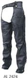 Black Leather Ladies Chaps w/ Black Inset Rose Pattern. These black biker chaps are made from analine cowhide leather for that extra soft lavish feel. These Chaps are fashioned in the traditional style with fringe down each leg. The highlight of these chaps is the beautiful black in-set rose pattern on each thigh. They are highlighted with silver colored hardware and a small pocket on the thigh. These chaps have the traditional zipper closure on the legs, with snaps at the bottom. The waist has the traditional roller buckle and lace back for a custom fit. The lining adds extra warmth and protection.These chaps are a great choice fo every biker at an affordable price------------- These chaps are manufatured by Allstate Leather the most trusted name in motorcycle leather ------- RETURN POLICY, We are confident you will love these chaps, but in any case you are not happy we have a 30 DAY RETURN POLICY. Simply contact our friendly customer service to get an RA #.----------SIZING INFO,to get the correct size please refer to the allstate leather size chart by clicking on the company name above and follow the link at the bottom of the page.