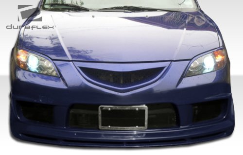 Duraflex FRP Mazda 3 4DR K-2 Front Bumper 1pc > 2004-2009 . Extreme Dimensions has revolutionized fiberglass marketing with their premium Duraflex aerodynamics. Duraflex is not flexible like urethane or plastic bumpers. Duraflex fiberglass combines fiberglass, plastic, and flex resins to obtain its unique features. Because of these features, Duraflex technology obtains a durability rate than the average fiberglass product, resulting in reduced shipping damages. Duraflex products come complete with a black primer finish, high quality mesh grille if applicable, generic hardware kit, and a basic guide to help you install the product. This revolutionary product allows the consumer to receive a premium fiberglass product at an affordable price. All fiberglass parts require modification, shaving, sanding, drilling, filling in order to ensure proper fitment.FeaturesHigh quality 6 oz. fiberglassProfessional prep work requiredCutting, Shaving, Filling required on FRP partsBlack primer finishHigh quality mesh grilleInstallation GuideGeneric Hardware Kit (most parts)Reduced damage rate up to 75%DISCLAIMER: Due to differences in products and design, durability test results may vary.